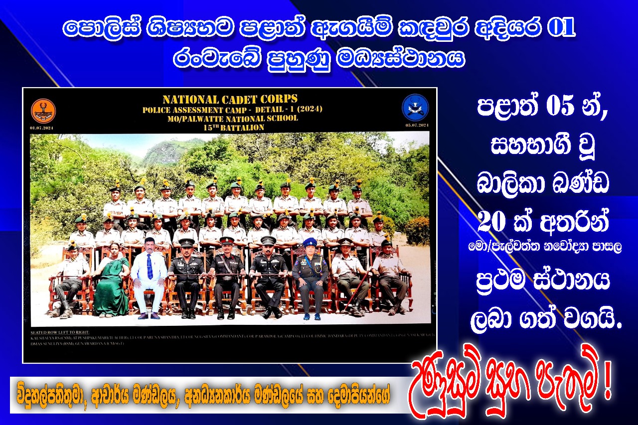 අපගේ පාසලේ ග්රී ලංකා පොලිස් කැඩෙට් ඌව පළාතෙන් 1 ස්ථානය ලබාගෙන ජාතිික මට්ටමින් 8 වන ස්ථානය ලබාගෙන ඇත.